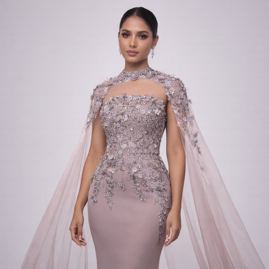 Lavanda Reale | Beaded Mermaid Evening Dress Overskirt Train