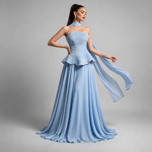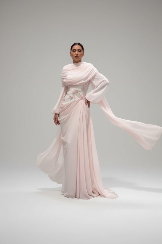 Sogno di Petali | Floral Chiffon Evening Dress High Neck