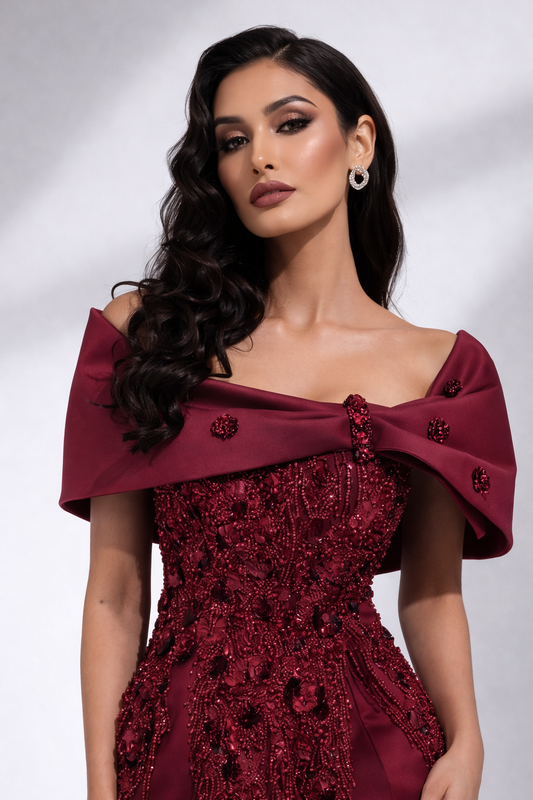 La Contessa | Beaded Cocktail Dress Off Shoulder Cape