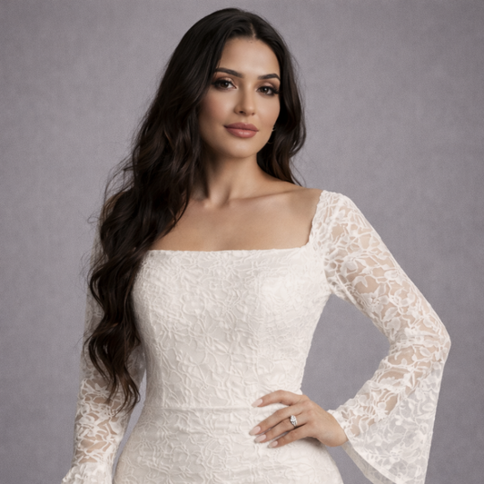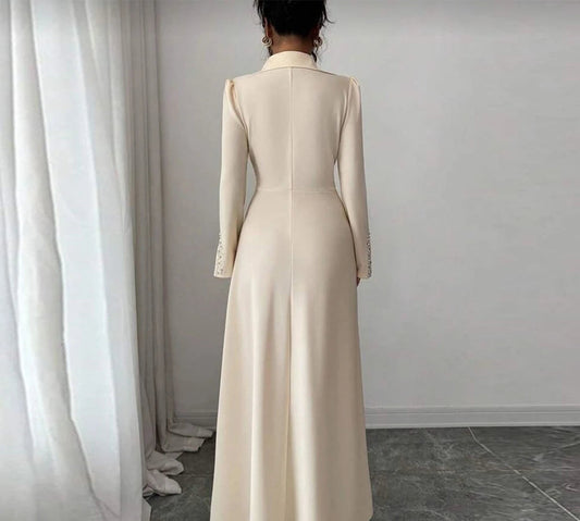 Pearl Embellished Mermaid Evening Dress | Scoop Neck Full Sleeve