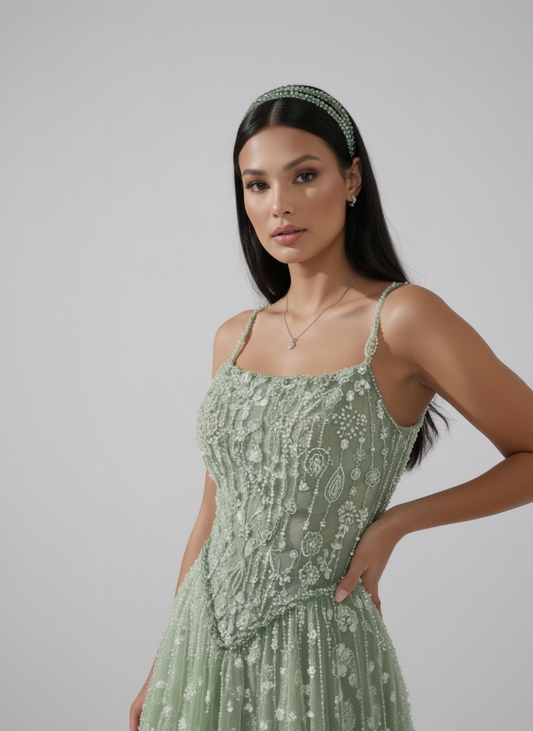 Petali Scintillanti | Beaded Floral A-Line Evening Dress